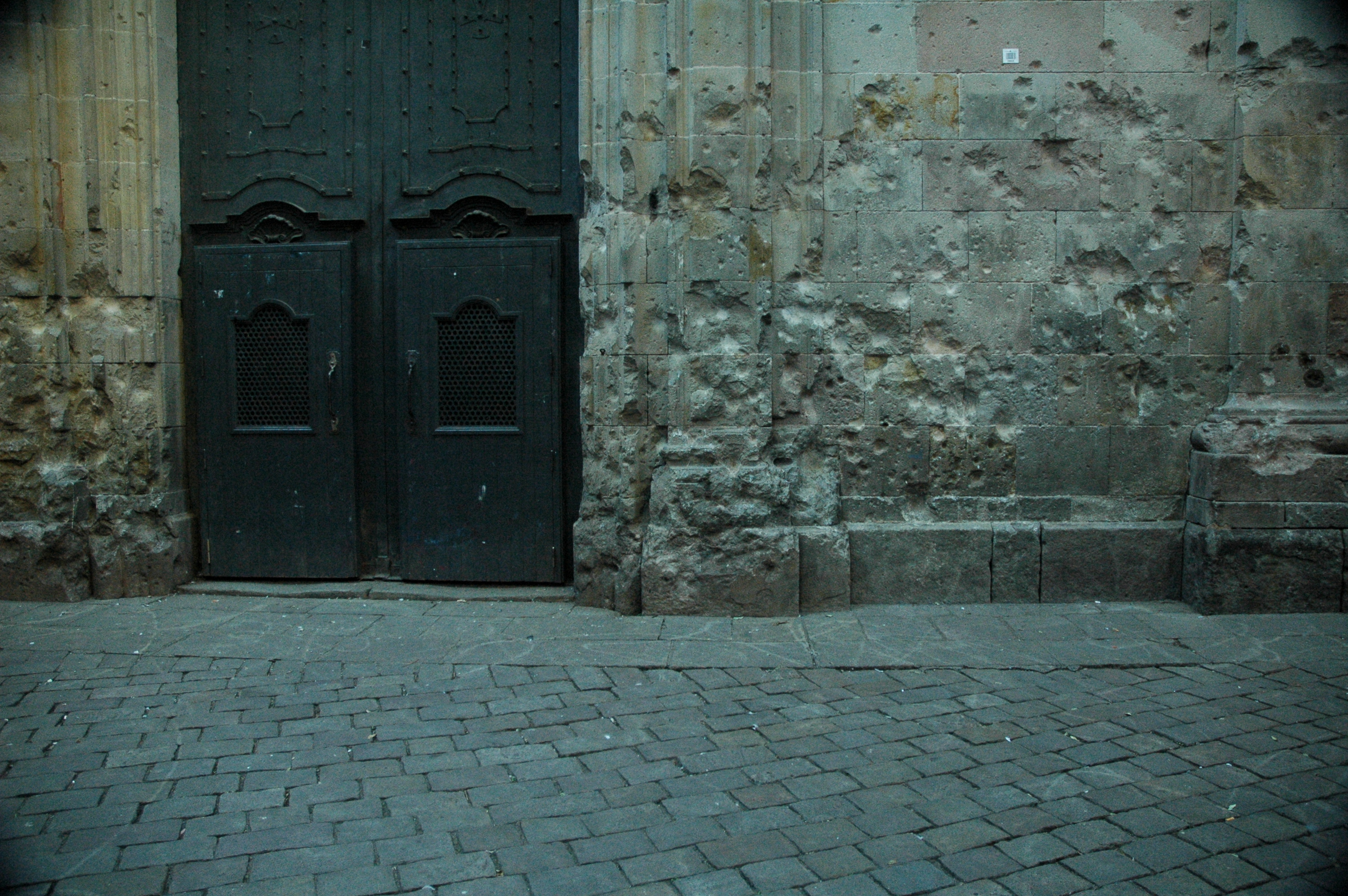 Damage caused by bombs and bullets.