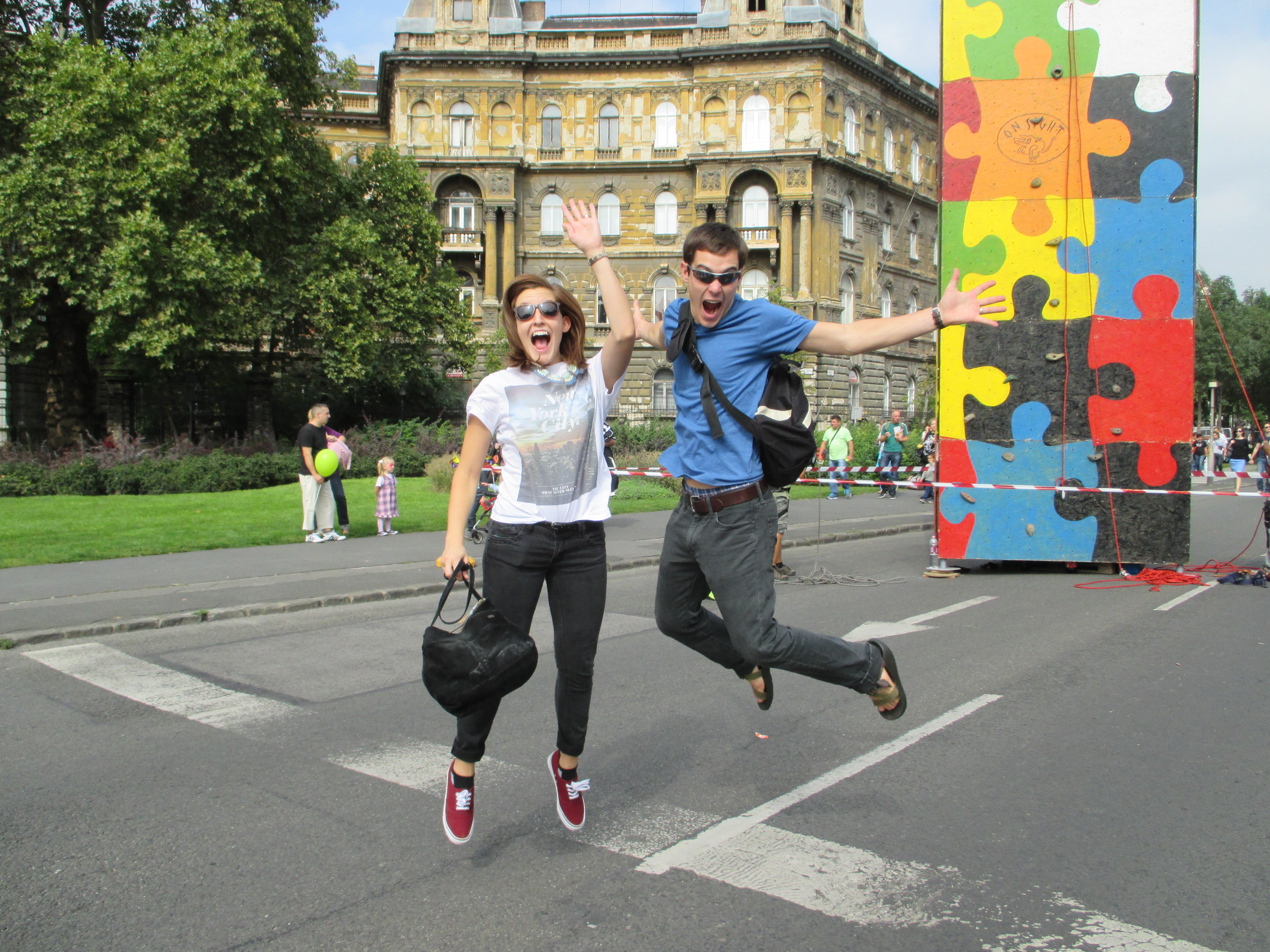 I went to the festival with Matt and Kendahl. We meandered up and down the middle of Andrassy Avenue (Andrassy út) – it was pedestrian-only for the day and lined with several booths. Andrassy út is a UNESCO World Heritage Site, first recognized in 2002. In addition, the world’s second oldest metro system runs down the length of the street. We met up with some of Matt and Kendahl’s friends, ate questionably large sausages, purchased a thing or two, and made our way to Heroes’ Square (Hősök tere) for the horse races. I kept singing “Off to the Races” by Lana Del Rey and envisioning myself in the video for “Radar” by Britney Spears. Pop culture – I am totally immersed.