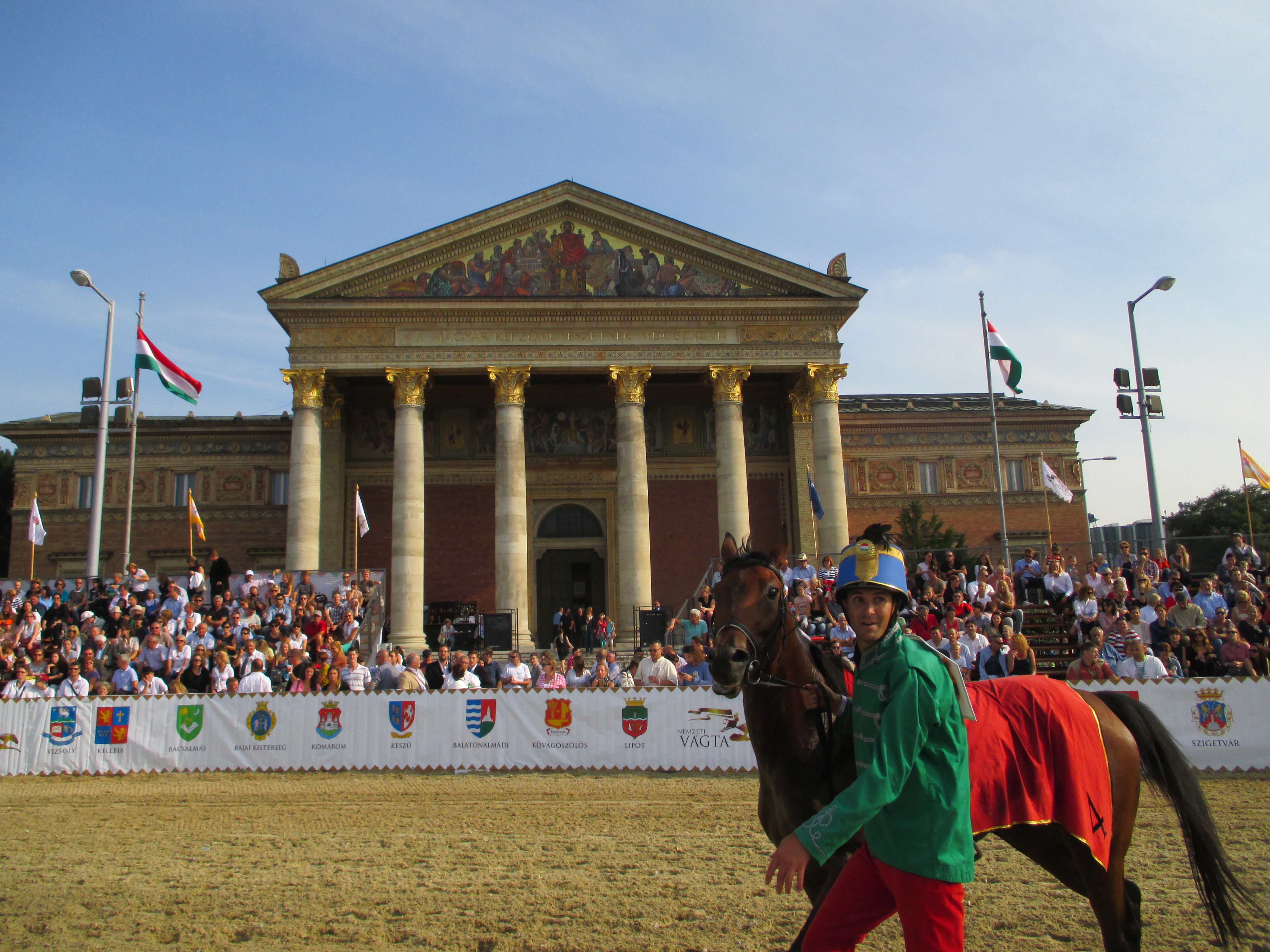 Let me now share the National Gallop’s description, which was crafted out of cherubs, shooting stars, and fairy dust: “It’s the National Gallop, the grandest of festivals on the grandest of scales. It’s a rather new Hungarian invention – a monumental reinvention of history and tradition. Just imagine. Heroes’ Square, transformed into a racetrack with 6,200 square meters’ worth of special equine-friendly sand. Grandstands in front of the two museums that flank the square, the biggest screens you’ve ever seen broadcast- ing the action, flags flying – the excitement will be palpable… And they’re off! Young jockeys, modern-day hussars on horseback, tear around the track. Hooves are pounding, dirt is flying, the crowd is cheering. Again and again, since as many as 250 horses and riders will compete for the 21.5-mil- lion-forint cash prize, a glittering sword, and national glory. There will also be mock horse- back battles, amazing archers shooting arrows on galloping horses…” SOLD.