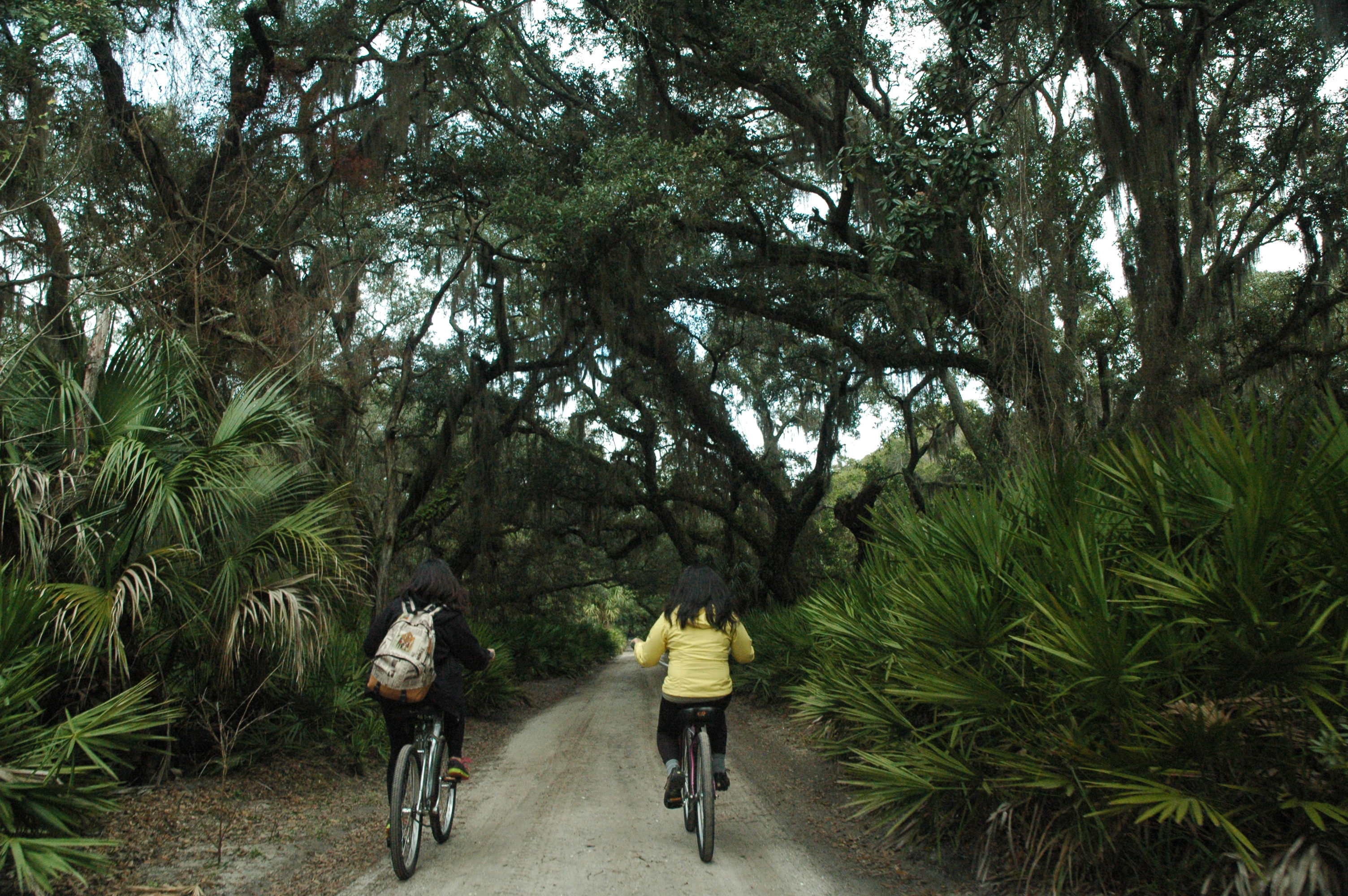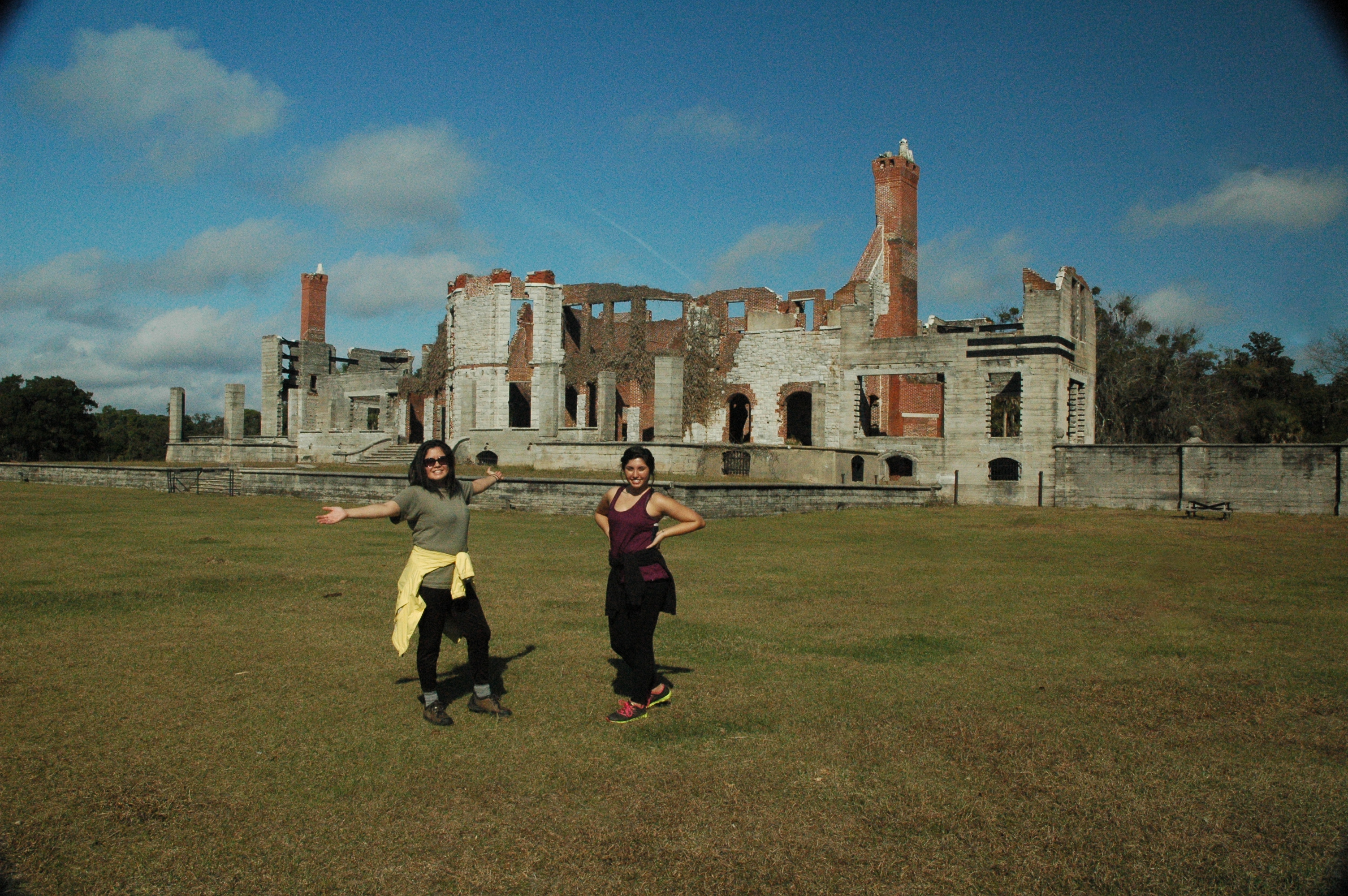Standing at the foot of a marsh with the ruins of a 19th century mansion behind me, I see a band of horses grazing in the distance. The wind blows through my own untamed mane, tangling it further. I smell nothing but ocean water and horse manure, of which I have unsuccessfully dodged. The sun shines through passing clouds, giving my now-vitamin-D-deficient-self a reason not to take a supplement for the day. Thanks to my little sister and a dramatic spin with my mouth open, bug spray dominates my taste buds. With my sisters by my side, three cameras in my hands, a bike underneath me, sweat in my skin folds, and a feeling of complete and utter peace pulsing throughout my body, I explore Cumberland Island.