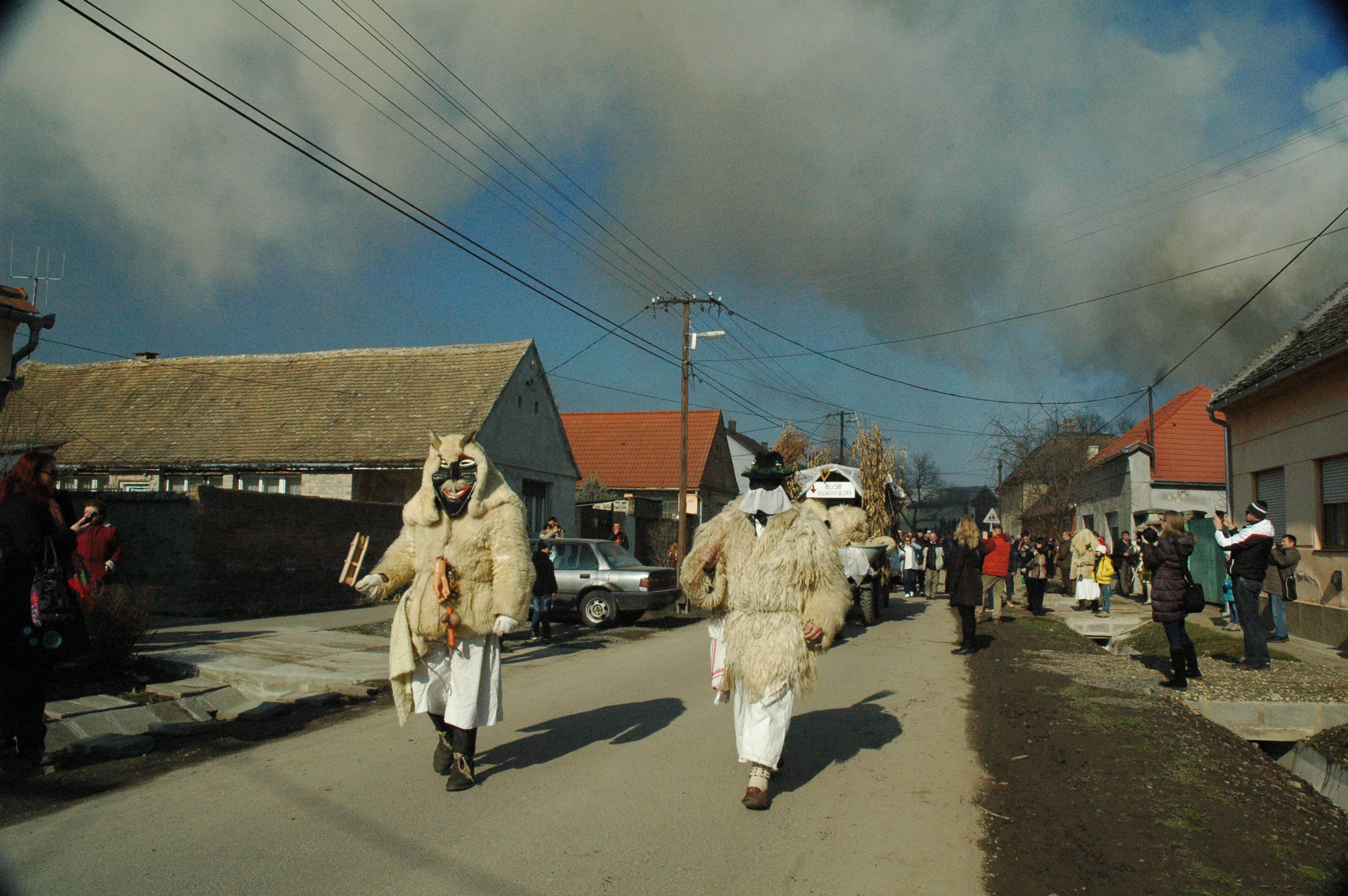 “I don’t see nothing wrong with a little bump n’ grind.” – R. Kelly. This line will make sense later. On Sunday I organized a field trip to Mohács for Busójárás, a celebration held at the end of the Carnival (Farsang) season here in Hungary. Matt, Kendahl, Dani, Carlyn, and my coworker Dani bácsi accompanied me and 21 of my 7th and 8th graders to a festival where these masked, wooly-cloak-wearing men lurk about town.