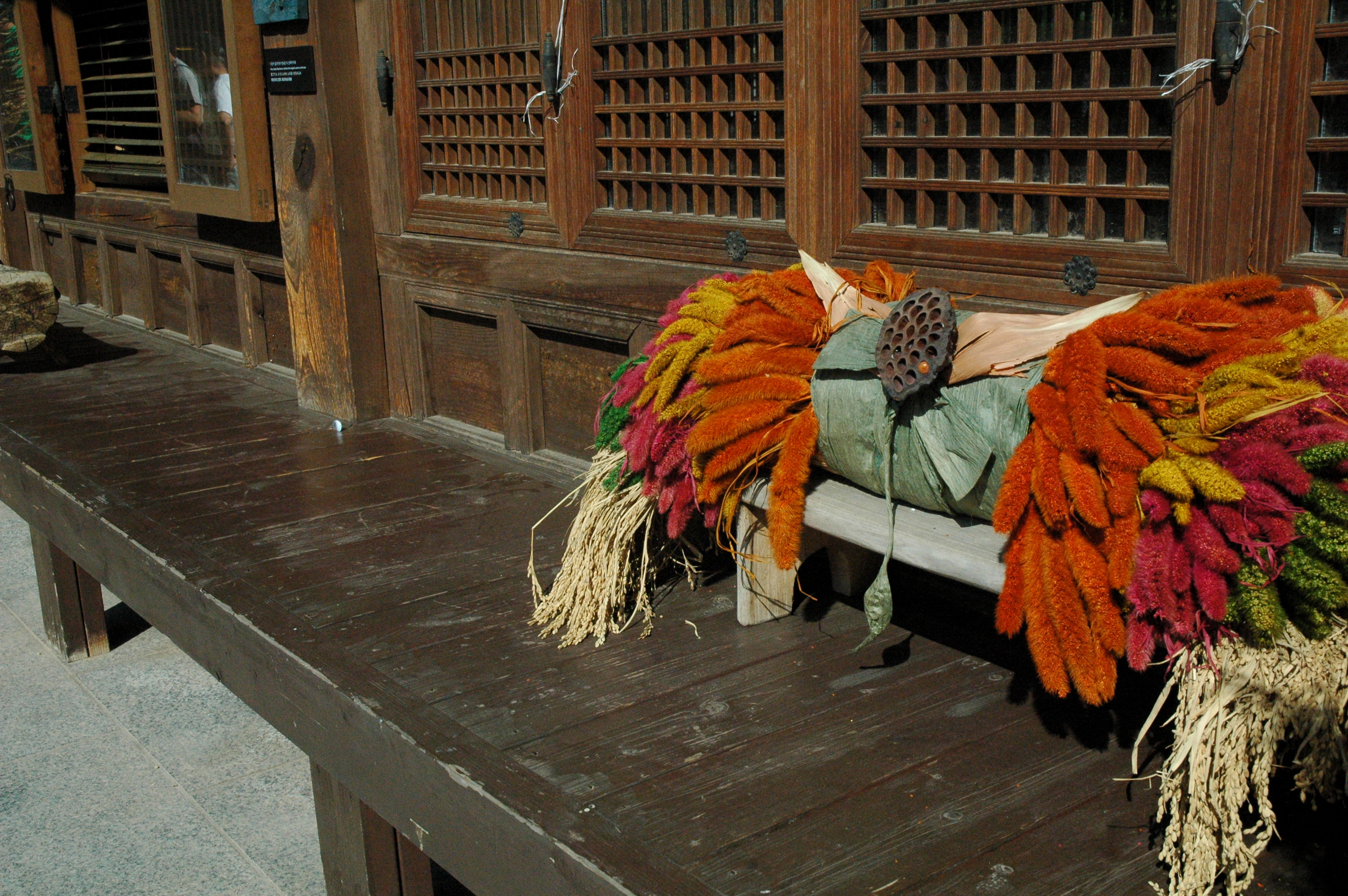 Today I visited Namsangol Hanok Village for Chuseok (추석), one of Korea’s biggest and most important holidays. Celebrated the day the full harvest moon appears, this holiday brings families together to give thanks and pay respects to their ancestors. Rice cakes called songpyeon (송편) are made and consumed as well. My students made some on Friday to give to their families. I also received some… from the owner of the convenience store by my school. As you can probably guess, my coworkers and I frequent the store quite often. Even though we are probably his biggest customers, receiving rice cakes from him was an unexpected, sweet surprise.