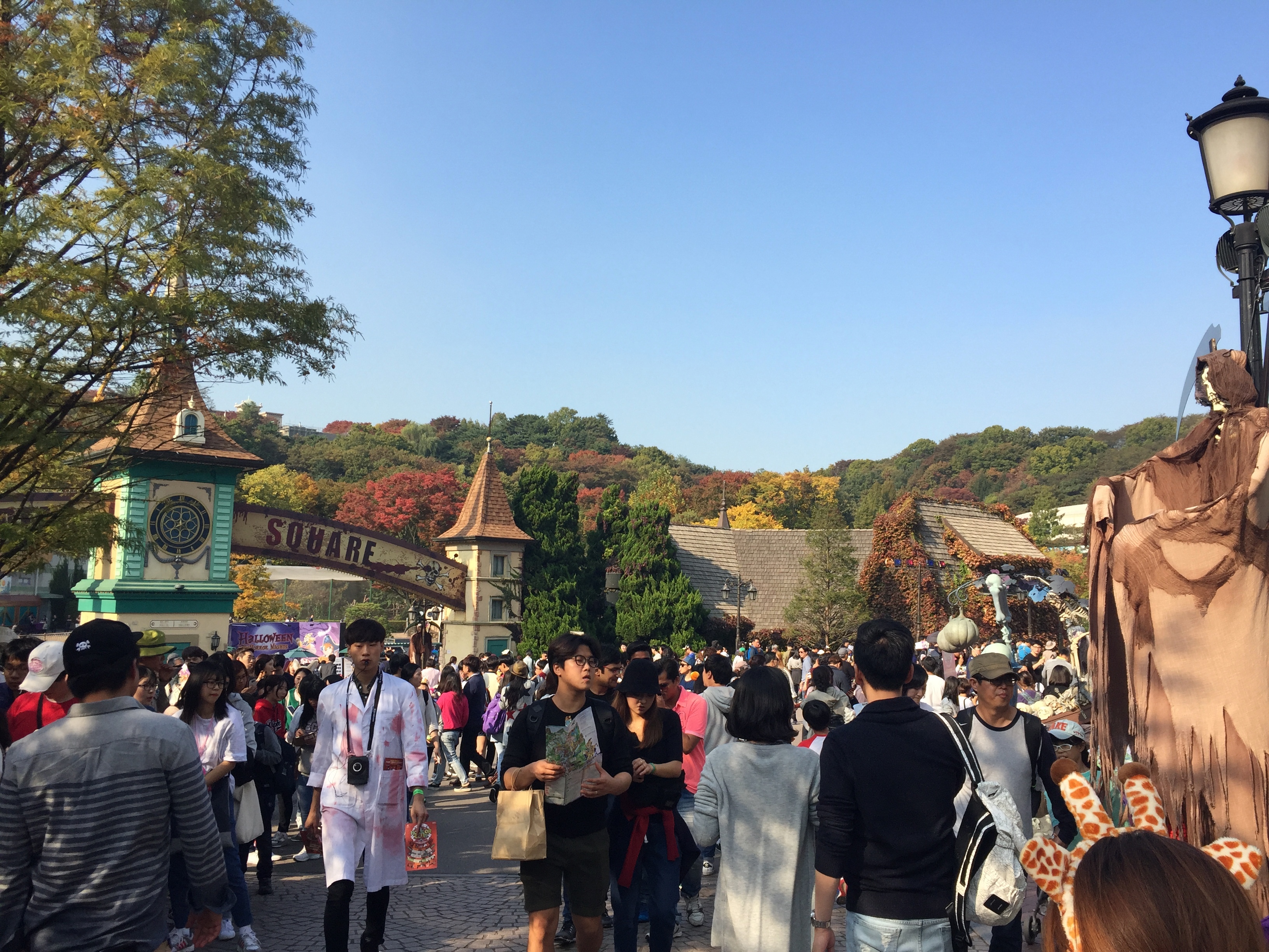 The plan was to meet up at 9:15AM at Sinnonhyeon Station (line 9), but “He-Who-Must-Not-Be-Named” might have shown up thirty minutes past that time. Seeing this person’s look of panic and abandonment from a coffee shop was almost delicious. I am an extremely punctual person (my friends from Hungary can attest to this statement), so I loathe when people are late. Anyway, we took bus 5002 from Sinnonhyeon to Everland, but there are other ways to get to the park (buses from Gangnam or the Yongin Ever Line). This 45-minute leg of our journey was not the best smelling one, as a baby defecated while on the bus. The smell of poop would end up haunting us all day. When we exited the bus, animal fecal particles floated majestically in the air. I am going to list the names of my friends here now because who doesn’t like a shout-out? They are: Nicole, Megan, Mike, Danni, Kevin, Danielle, and Jenee.