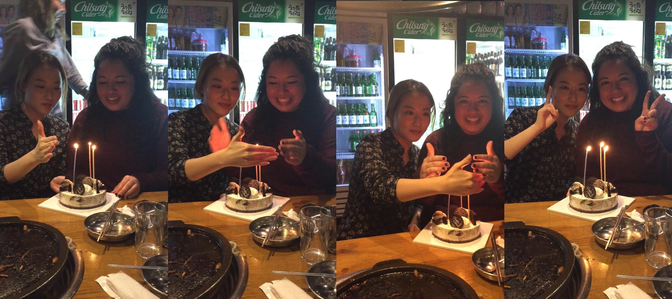 Monica, Brent, Emily, and I took a cab to Hongdae to eat. After eating some barbeque, we headed to “You Are Here,” a café run by YouTubers: EatYourKimchi and Talk To Me In Korean. In the café, there is a “Speaker’s Corner,” where a question is posted and you can answer it. Sometimes your clip gets selected to be featured in one of their videos. Fear not, Monica, Brent, and I made it in one. Prepare yourself my signature perpetually-plastered awkward smile. You can find us at 1:14.